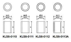Держатели KLS8 различаются внутренним видом держателя, наличием перегородки, отверстий под выводы и т.д. (см. таблицу).