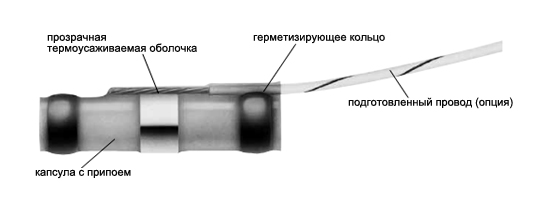 Термоусаживаемые гильзы с припоем (SolderSleeve) имеют прозрачную оболочку для проверки качества соединения и защиты от воздействий окружающей среды. Процесс пайки обеспечивается наличием встроенного в гильзу припоя с флюсом. При нагреве горячим воздухом термоусаживаемая основа гильзы сжимается и высвобождает слой припоя, который образует полностью герметичное соединение без механических внутренних натяжений.