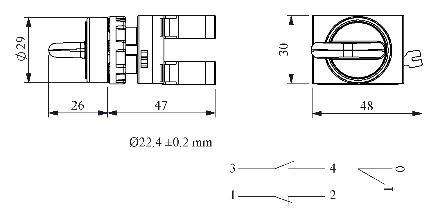 CM102S20, Переключатель 0-1 с фиксацией (1НО-1НЗ)