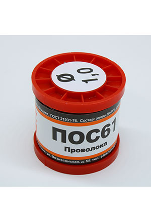 ПОС 61 Прв d=1.0мм 200гр. катушка, Оловянно-свинцовый припой ПОС 61 Прв d=1.0мм 200гр. катушка, Sn - |