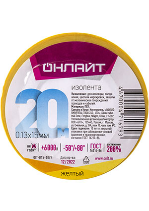61879, Изолента ПВХ 61 879 OIT-B15-10/Y желт. ОНЛАЙТ 61879 |