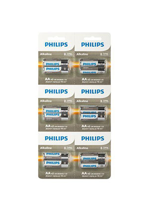 Алкалиновая (щелочная) батарейка типа AA  LR6 / MN 1500 (пальчиковая) питает все устройства с высоким энергопотреблением. Долговечные и надежные элементы питания для повседневных устройств, таких как часы и радиоприемники. Базовые щелочные батареи Philips обеспечивают максимальное качество для стандартных задач. Щелочная технология отлично подходит для устройств с высоким энергопотреблением. Благодаря наличию разных моделей вы можете использовать эти батарейки для любых нужд. Батарея остается годной для использования в течение 10 лет. Щелочные батареи Philips содержат 0 % кадмия, ртути и свинца. Тип элемента питания: Тип AA / щелочная LR6. Напряжение батареи: 1,5 В. Химический состав: Щелочная. Тяжелые металлы: Не содержит кадмия, Не содержит ртути, Не содержит свинца. Упаковочный материал: Картон, ПЭТ. Тип упаковки: Блистер ПЭТ. Срок хранения: 10 лет. Взаимозаменяема с: AA, LR6, AM3, 15A, MN1500. Щелочная технология обеспечивает питание устройств с высоким энергопотреблением. Эти батареи Philips гарантированно не содержат вредных тяжелых металлов, таких как кадмий, ртуть и свинец. Для удовлетворения потребностей потребителя Philips предлагает комплексный портфель наиболее часто используемых батарей (AA, AAA, C, D, 9 В) в различных вариантах упаковки. Любая батарея разряжается, когда она не используется. Мы гарантируем, что эта батарея содержит, по крайней мере, 80 % своей первоначальной энергии до окончания срока годности.