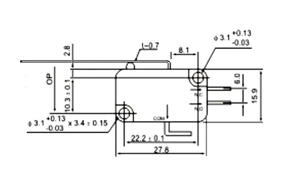 SM5-03P-28G-G, микропереключатель с лапкой 125В 5A Switronic