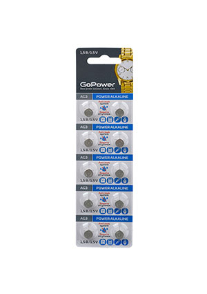 Артикул: Батарейка GoPower G3/LR736/LR41/392A/192 BL10 Alkaline 1.5V (10/100/36