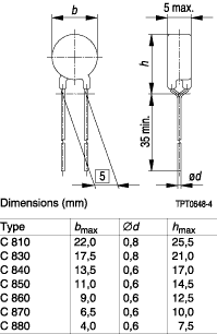 B59870C80A51, B59870C0080A051 PTC термистор 130mA 265В 25Ом (печатный каталог ПЛАТАН)