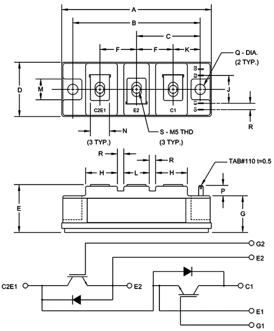 CM50DU-24F, модуль 2 IGBT RTC 1200В 50A 4 поколение F серия (печатный каталог ПЛАТАН)